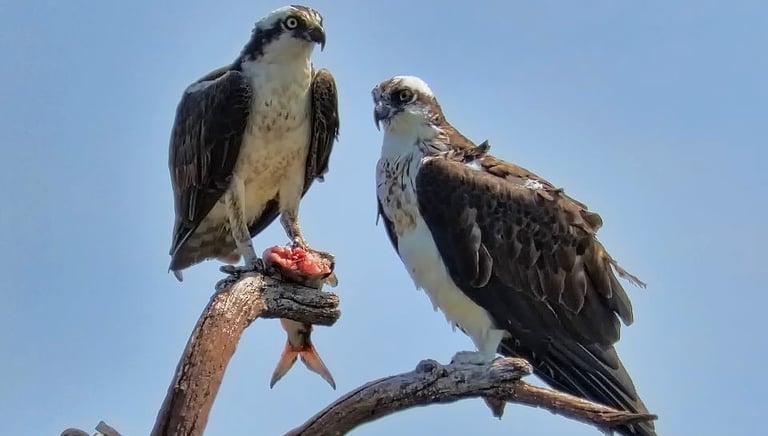 Esta ave é amplamente reconhecida por sua impressionante habilidade de caça, utilizando sua visão aguçada para identificar peixes à distância enquanto voa a grandes altitudes. Possui o corpo é esbelto, com asas largas e patas fortes, adaptadas para mergulhar na água em alta velocidade e capturar suas presas. As águias pesqueiras se alimentam principalmente de peixes, mas também podem consumir outras aves aquáticas e pequenos mamíferos.